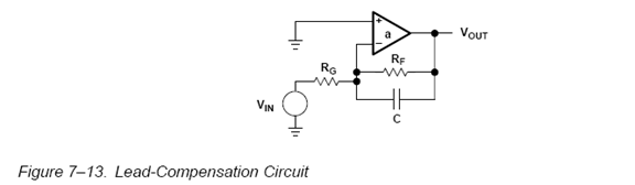$(=-1/τ_2)$ then out non dominant pole would become $-1/(R_G||R_F C)$ which is higher in frequency than the zero. Hence we have moved the non dominant pole higher up in frequency and stabilized the system. See a more detailed analysis in Op Amps for Everyone, Fourth EditionLag Compensation