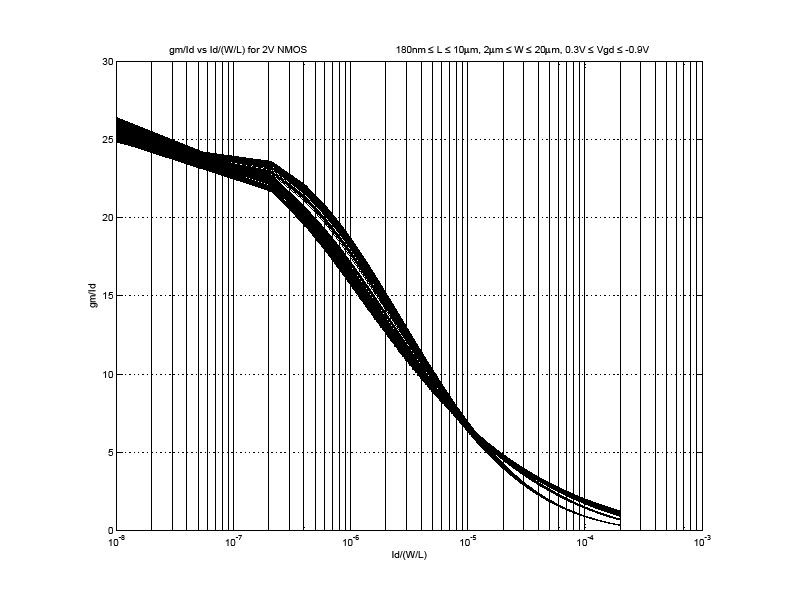 Create the gm/Id vs Id/(W/L) semi-log graphs for the MOS transistors of the process. For Cadence the process is described here Getting gm by Id vs Id by W by L graphs in Cadence. A typical graphs looks like as follows: